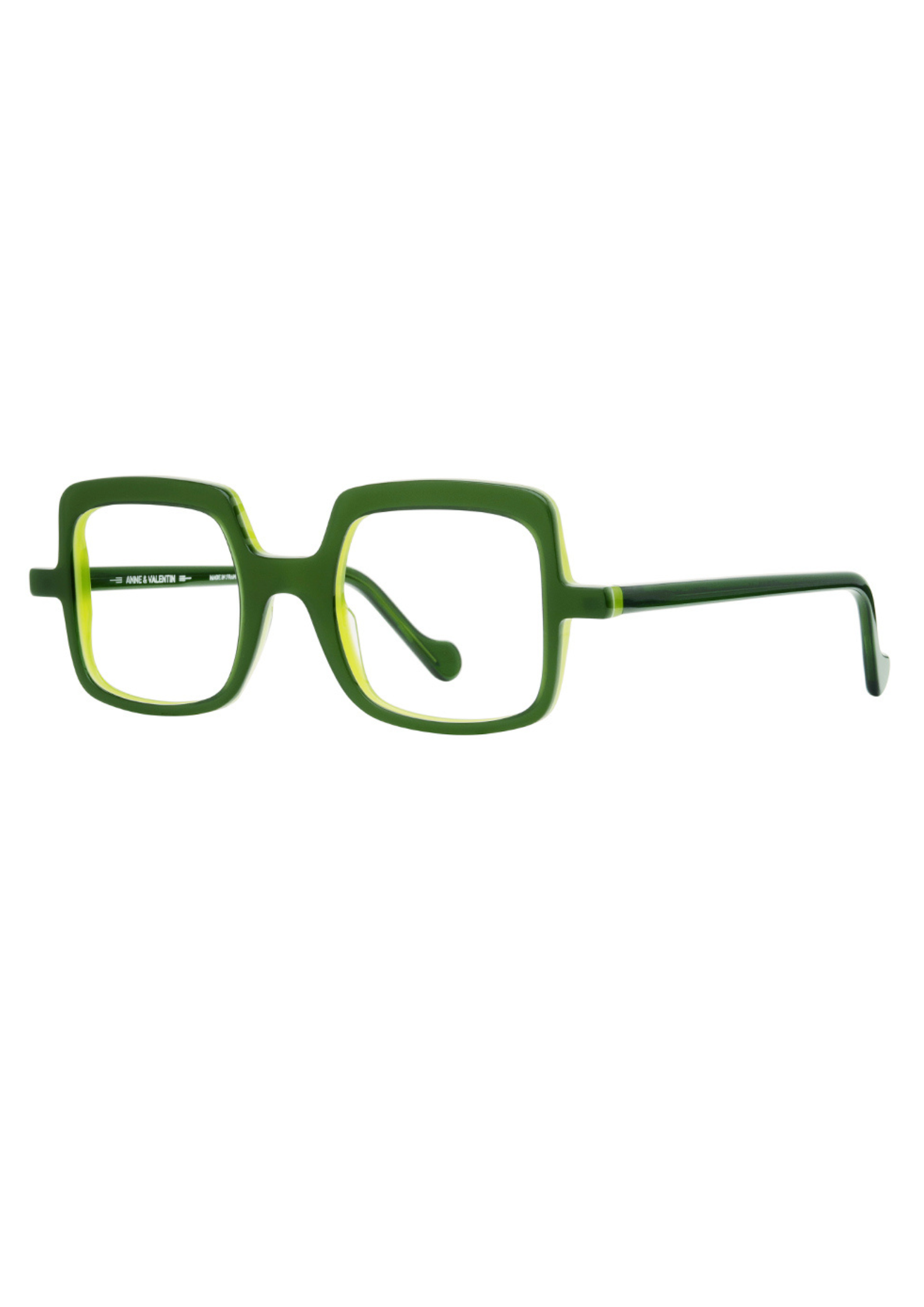 Montura fabricada en acetato color verde combinada con un verde claro en el interior .Una montura cuadrada grande para rostros pequeños , contemporánea , chic y llena de personalidad . Dimensiones 46-21/141