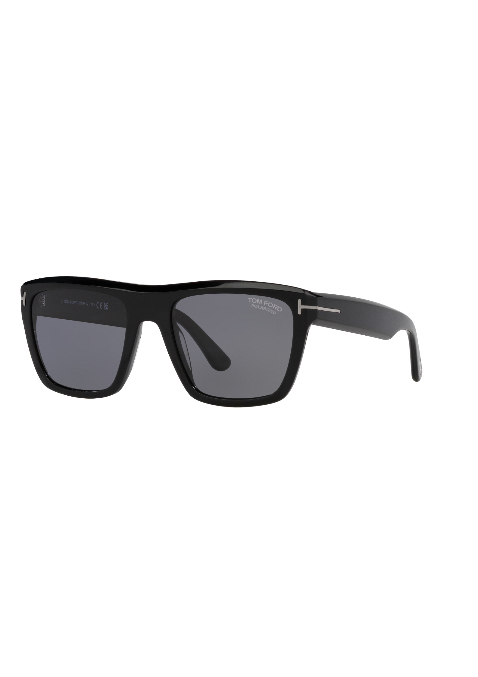 Gafa de sol masculina fabricada en acetato negro brillante. Forma rectangular oversize. Lentes tintadas en negro , polarizadas y con antirreflejante por la cara interna. Protección 100% UVA/UVB. Dimensiones 55-20/145