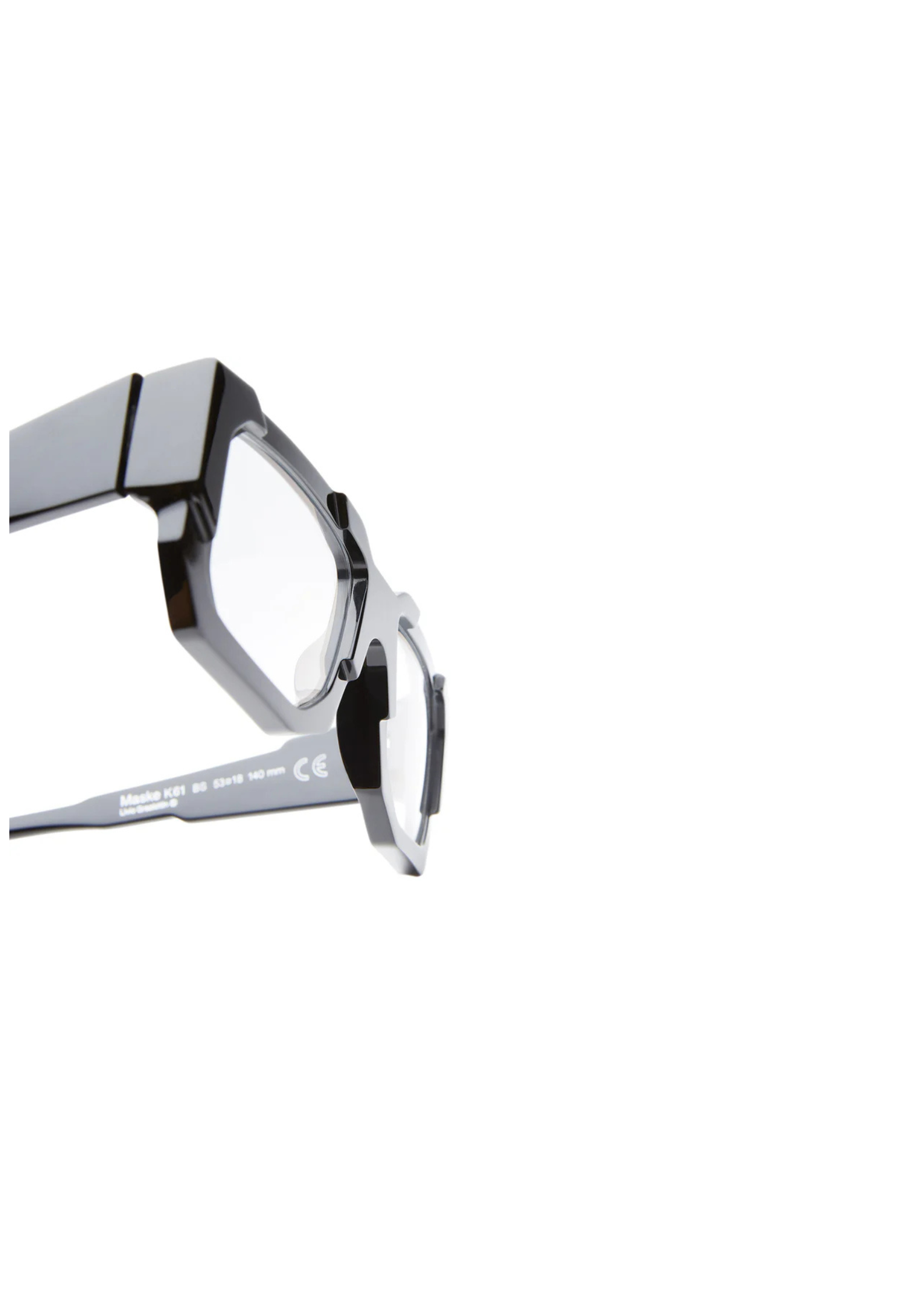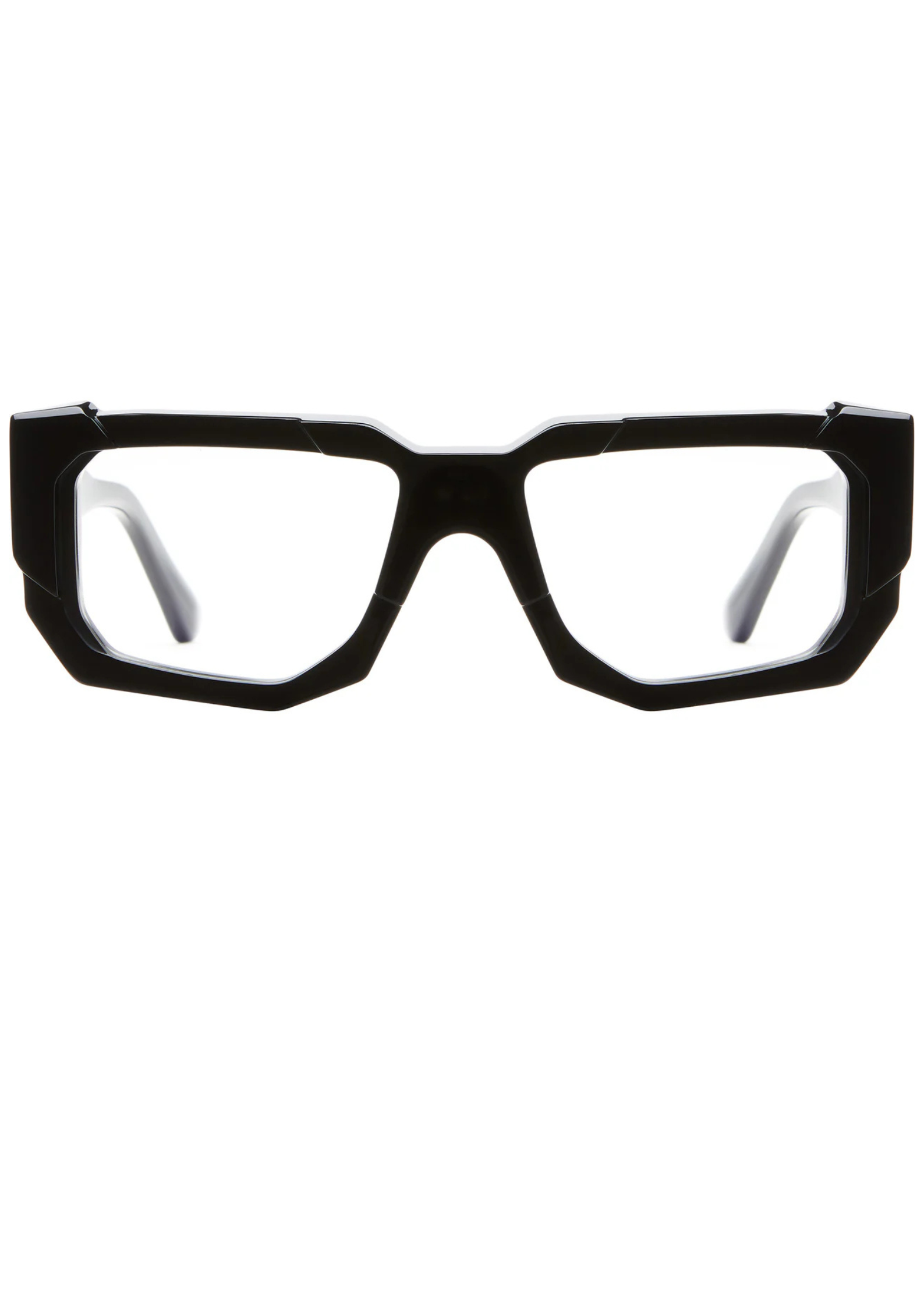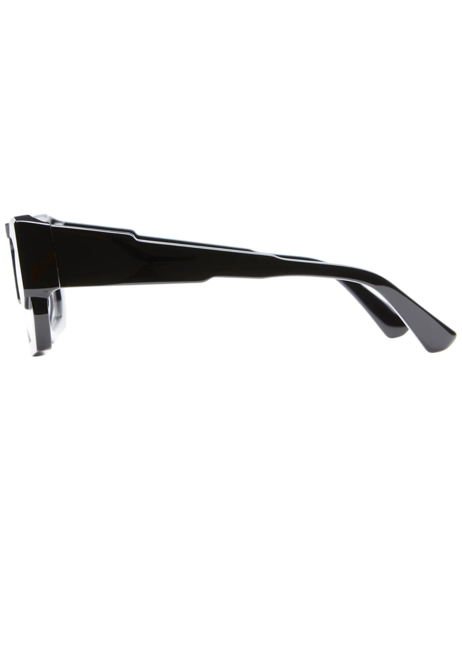 Montura unisex fabricada a mano en Italia en acetato negro brillante . Su forma rectangular con relieves está pensada para quienes buscan una pieza de carácter y diseño rompedor . Dimensiones 53-18/140